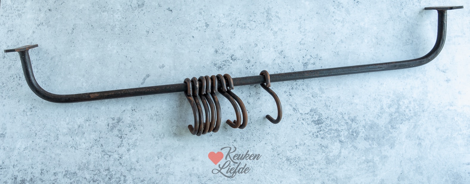 Een mooie landelijke kapstok van ijzer met 8 vaste haken. Eventueel ook goed te gebruiken in de keuken als handdoekrek.